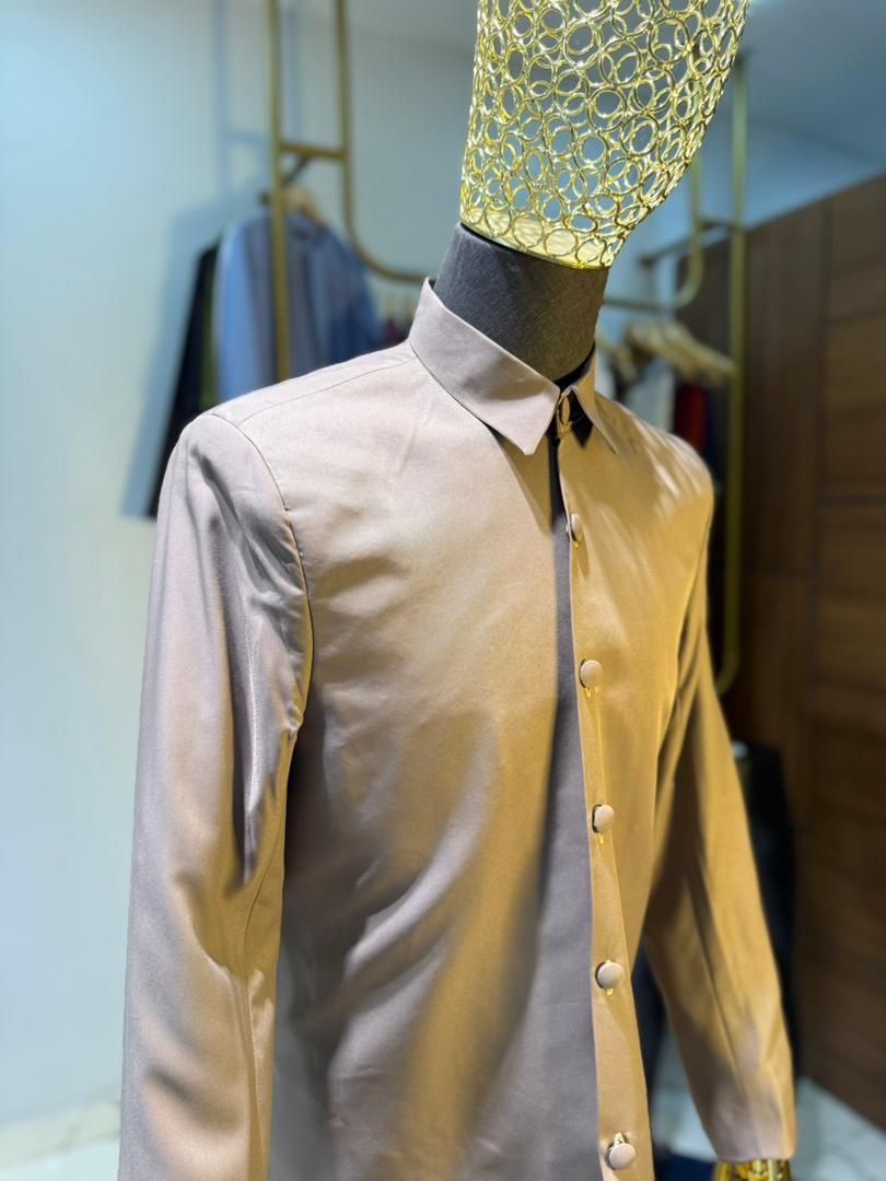 Sharp Pointed Collar: A crisp, classic collar design that allows the suit to be worn fully buttoned for a formal look or slightly open for a relaxed, high-fashion vibe.